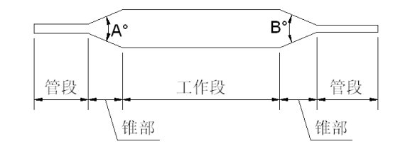 稱為工作段;兩端管段的作用是和導(dǎo)管其余部分進(jìn)行連接;錐