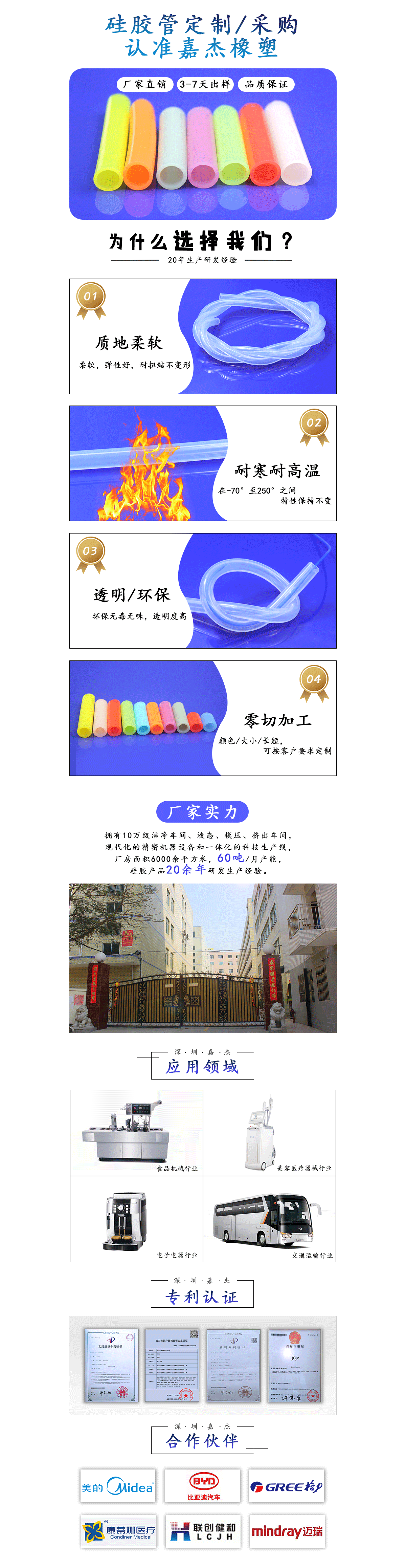 耐高溫食品級透明硅膠管廣泛應用于醫療設備、電子電器、化學實驗、生物制藥、食品加工、健身器材、船舶